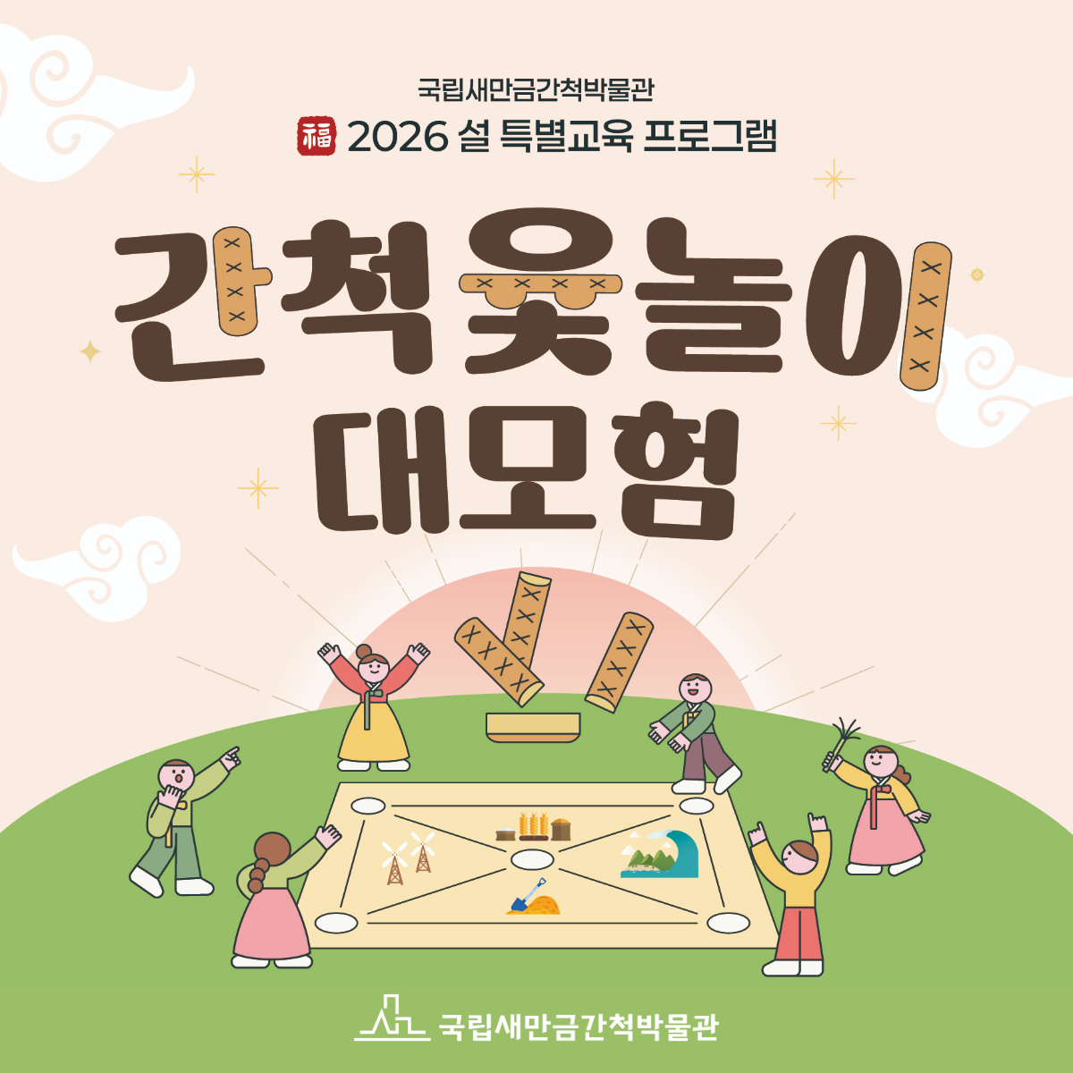 - [체험] 새만금 및 간척 역사 내용을 게임과 퀴즈로 구성한 윷놀이 판을 활용하여 강사 지도하에 진행하는 참여형 윷놀이 체험
