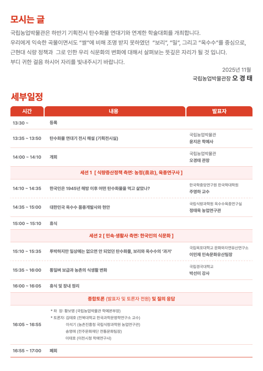 * 국립농업박물관 2025년 하반기 기획전시 <탄수화물 연대기> 연계 학술대회