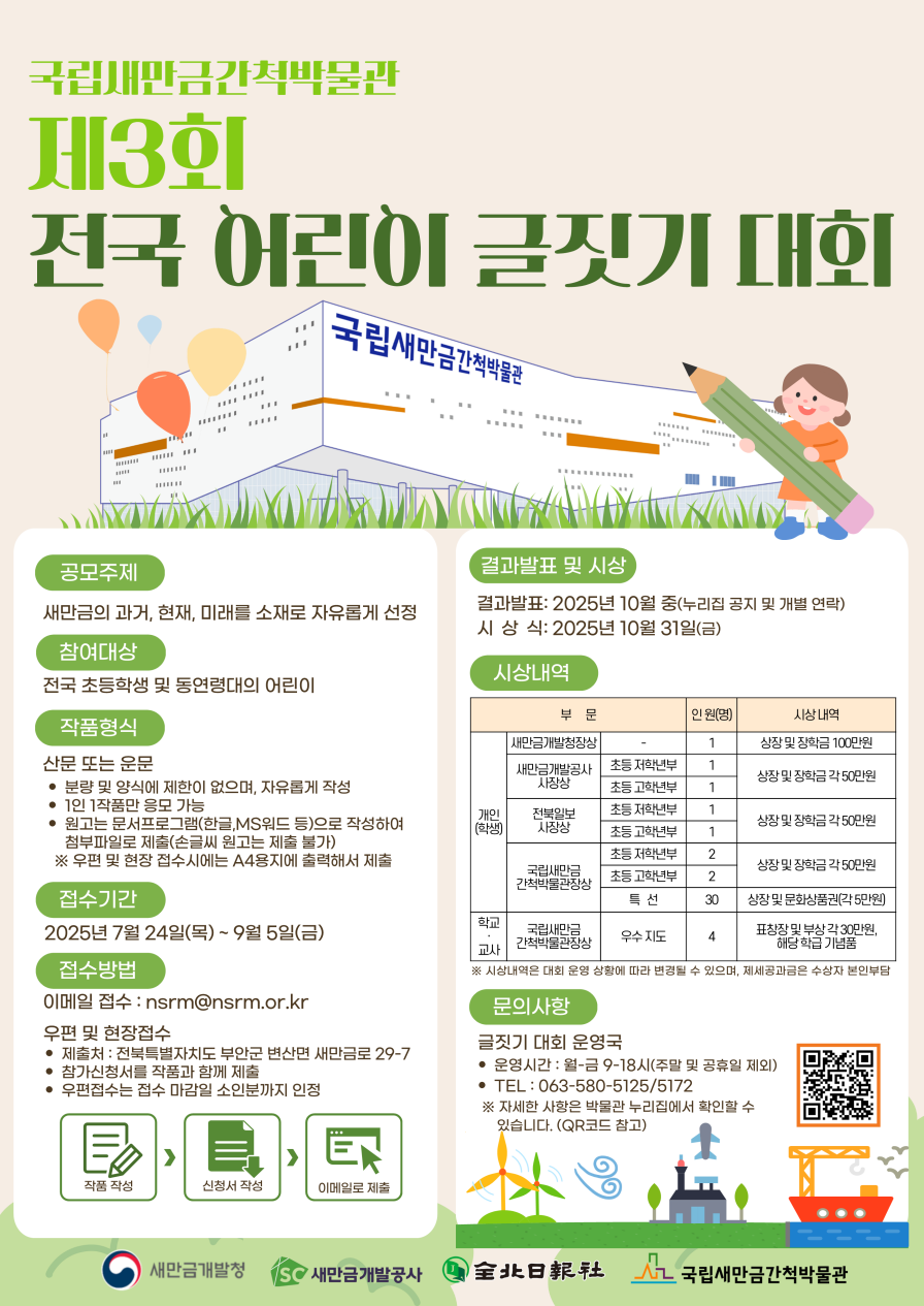 어린이들의 창의적이고 풍부한 상상력을 통해 새만금의 미래 비전이 다양하게 표현되기를 기대합니다.