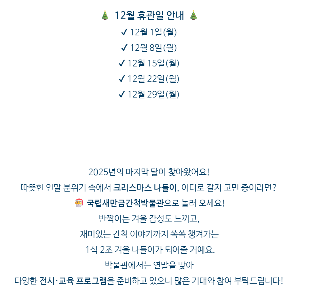 2025년 12월 휴관일 안내