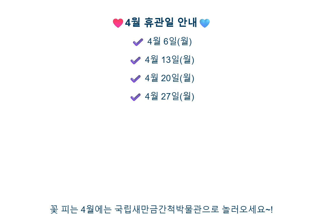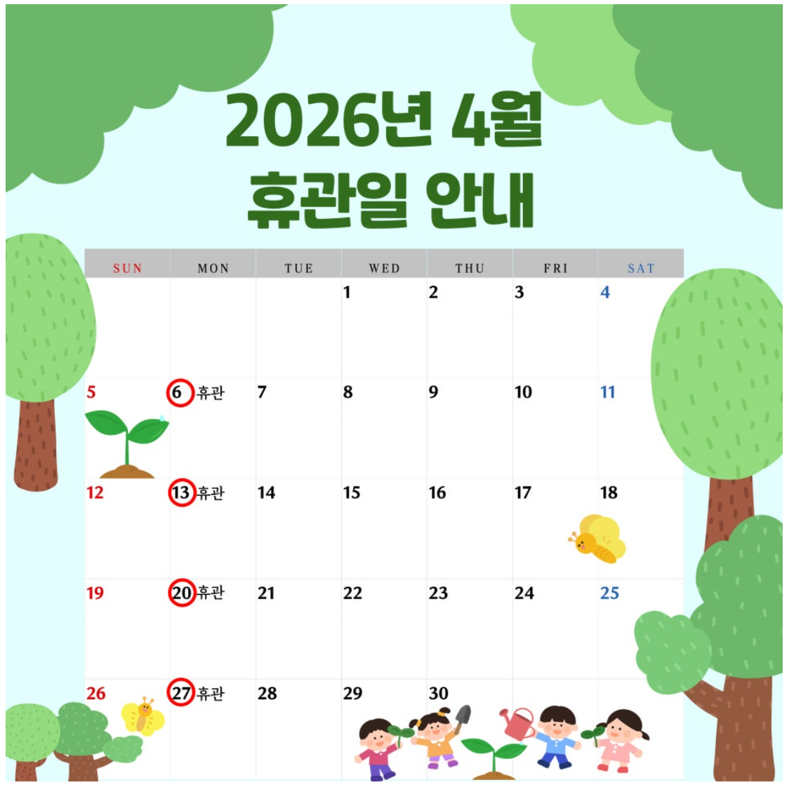 2026년 4월 휴관일 안내