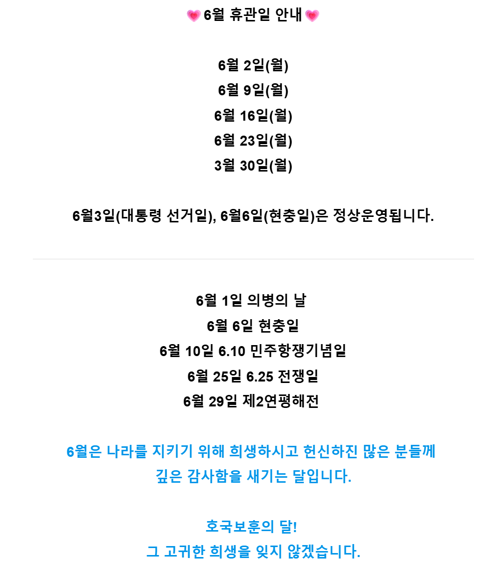 2025년 6월 휴관일 안내
