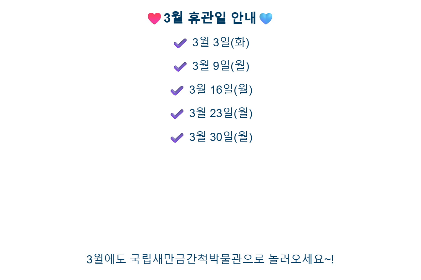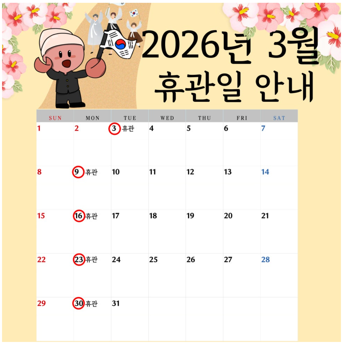 2026년 3월 휴관일 안내