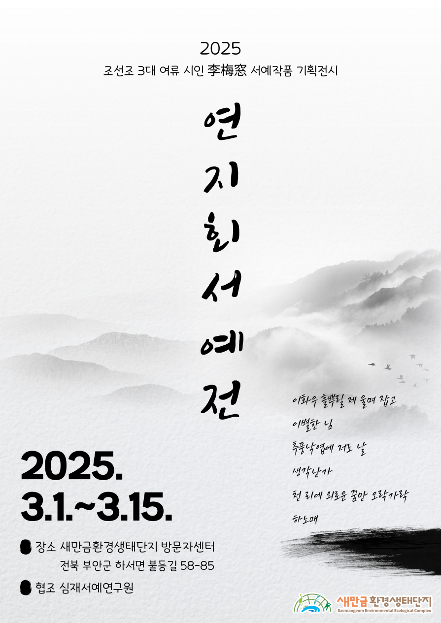 ○ 전시내용: 조선 3대 여류 문장가로 이름난 부안 문장가 이매창의 시를 담은 서예 작품 전시